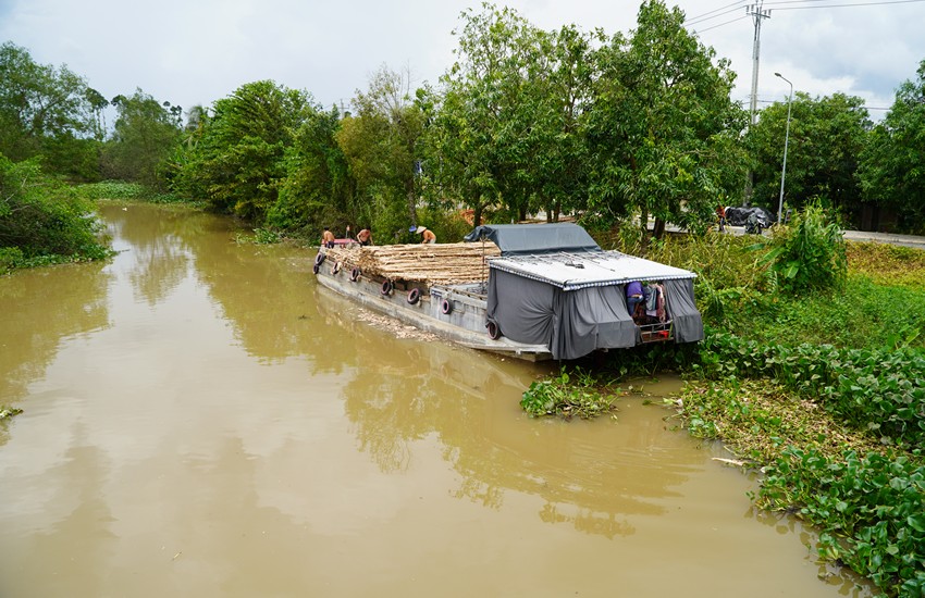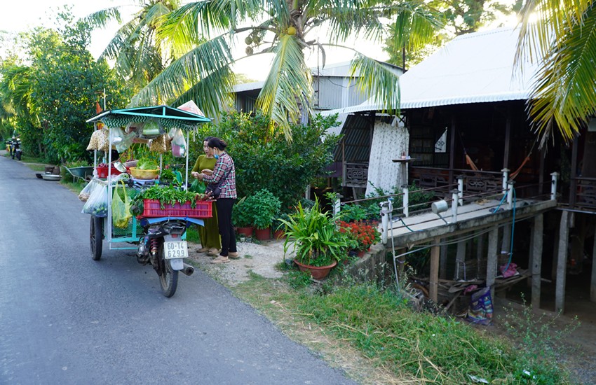 This area offers lovely countryside for cycling, so we take it easy—riding at a relaxed pace and stopping along the way for photos. There are more Khmer people living here than Vietnamese and Chinese. Cycling through the area, you can observe how locals use waterways as their main means of transport.